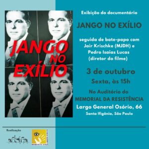 Jango no Exílio, documentário que retrata a vida do ex-presidente João Goulart no exterior após ter sido deposto pelo golpe militar, será exibido no Memorial da Resistência, no centro da capital paulista, nesta sexta-feira, 3, às 15h.